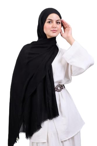 Generic - حجاب أسود من قماش الشاش القطني بحواف منسدلة، سكارف رأس إسلامي محتشم