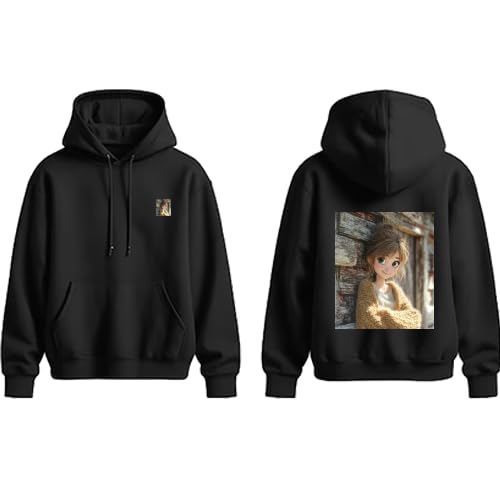 Generic - هودي اسود مع طباعة شخصيات الرسوم المتحركة، جيب امامي، غطاء رأس برباط سحب مقاس (L)