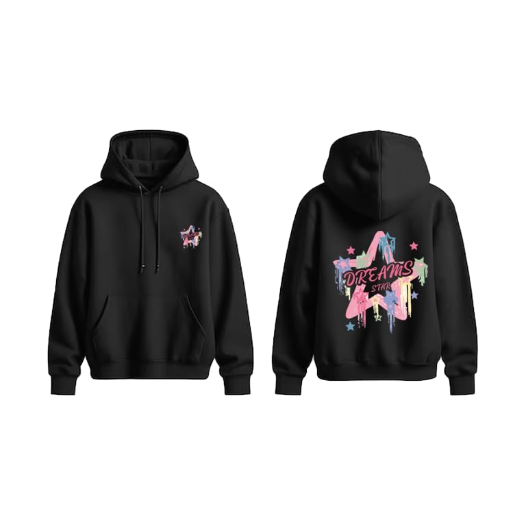 Generic - هودي اسود بطباعة جرافيك دريمز، تصميم بينك وازرق مقاس (S)