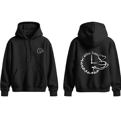 Generic - سويت شيرت بغطاء رأس مزين بطباعة "I Coffee" وجيب أمامي ورباط، أسود، سمول (S)