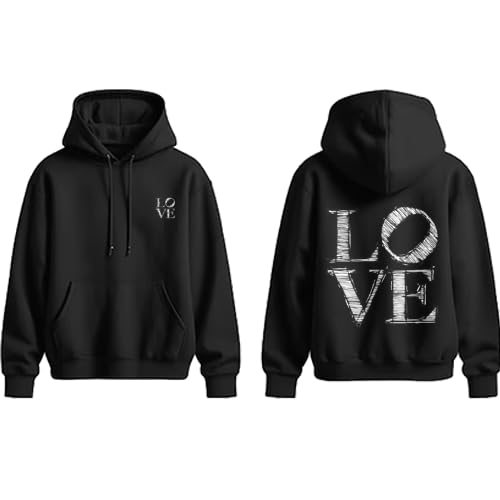 Generic - هودي اسود مع طباعة جرافيك LOVE، تصميم امامي وخلفي، غطاء راس برباط سحب مقاس (9-12 سنة)