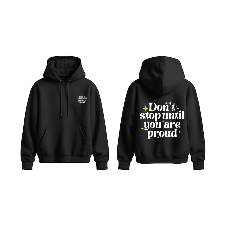 Generic - هودي اسود مع اقتباس تحفيزي, Don't Stop Until You Are Proud, طباعة امامية وخلفية مقاس (M)