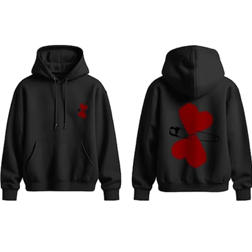 Generic - هودي اسود مع تصميم فراشة قلب احمر بطباعة امامية وخلفية نمط كنزة صوفية مقاس (2XL)