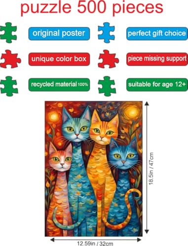 Generic - بازل 500 قطعة ثلاث قطط من بلاك هورس بازل موديل Dz263