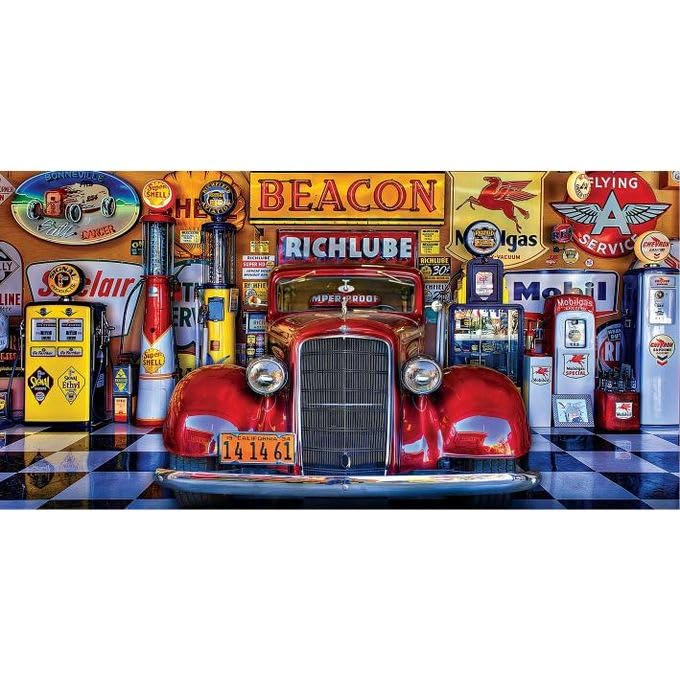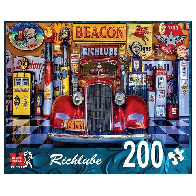 Generic - Black Horse بازل ريتشلوب، سيارة كلاسيكية حمراء، محطة وقود عتيقة، بازل 200 قطعة