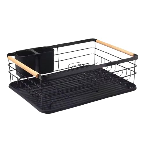 generic - منظم اطباق المطبخ اسود رف تجفيف بقاعدة ثابتة لترتيب الاطباق والأكواب على شكل حرف T
