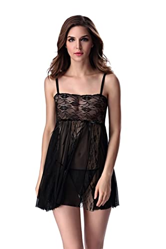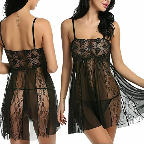 Generic - لانجيري بيبي دول دانتيل شفاف - اسود