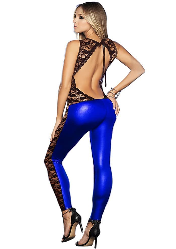 Generic - لانجيري سالبوت مع دانتيل اسود، من الجلد، ازرق
