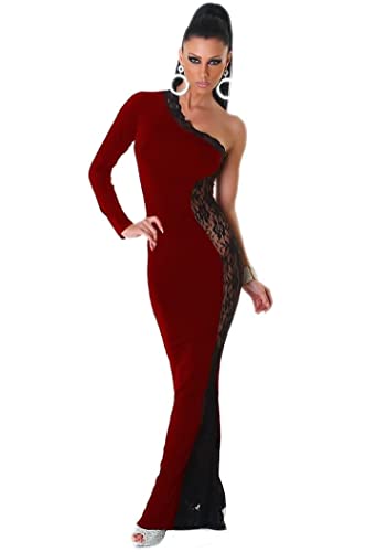 Generic - لانجيري نبيتي طويل بكم واحد مزين بدانتيل اسود ، للنساء