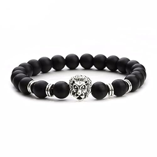 Generic - سوار من الحجر الطبيعي لافا الاسود مزود بحجر على شكل اسد، سوار بخرز تركي عتيق مصنوع يدويًا, زنك، للجنسين