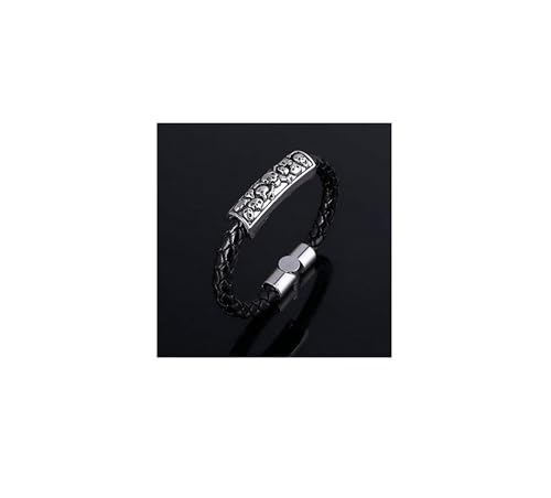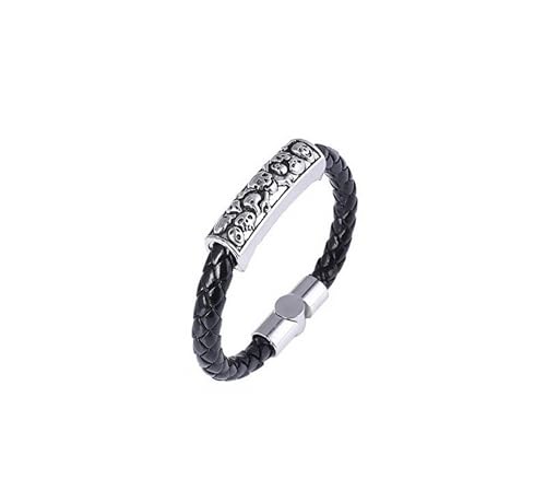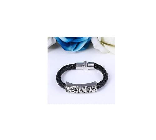 Other - اسوره من الجلد الأسود مضفر مع اسطوانه معدنيه فضية عليها جماجم رقم الصنف 845 - 1، للرجال