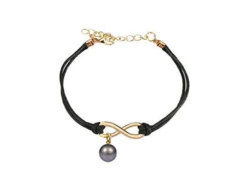 Other - أسود جلد حبل مزدوج طبقة ذهبية سحر إنفينيتي مع سوار حبة رمادي للنساء
