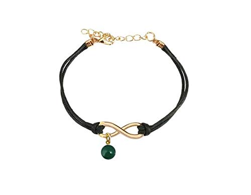 Other - أسود جلد حبل مزدوج طبقة ذهبية سحر إنفينيتي مع الأخضر الخرزة سوار للنساء