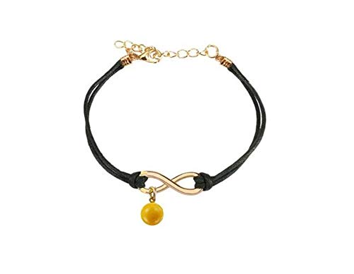 Other - أسود جلد حبل مزدوج طبقة ذهبية سحر إنفينيتي مع سوار حبة البرتقالي للنساء