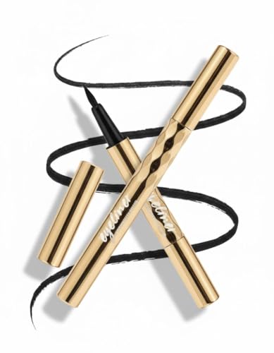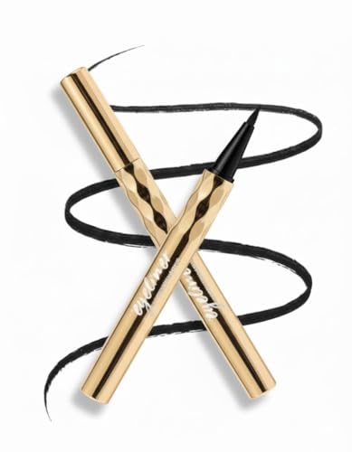 Generic - قلم تحديد عيون سائل اسود مقاوم للماء والتلطخ ويدوم لمدة 12 ساعة مع طرف من اللباد لمكياج العيون للنساء، ناعم وسريع الجفاف، غطاء ذهبي عالي الصبغة