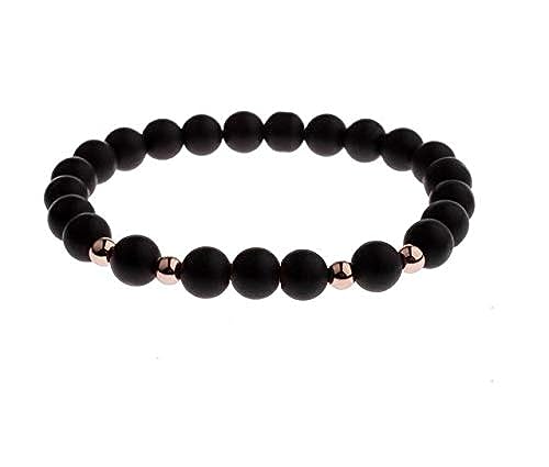 Other - سوار اسود ماط مع خرز معدني ذهبي - مقاس 20، للجنسين