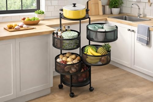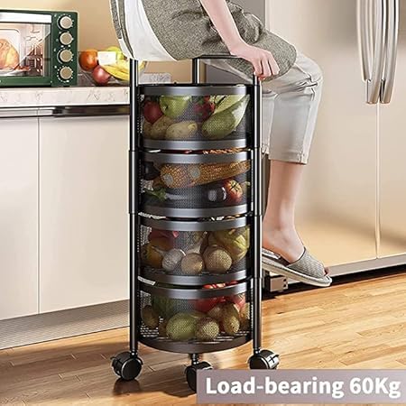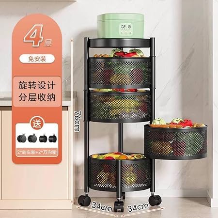 Generic - حامل تيربو معدني XPY-V9 بأربعة أدراج، تصميم دوّار بزاوية 360° لتنظيم أنيق وسهولة في التحريك، مناسب للمطبخ والحمام أو حتى المكتب وغرف الأطفال، لون أسود