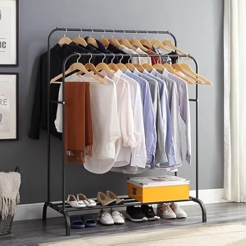 Generic - رف ملابس معدني اسود | شديد التحمل | متعدد الاستخدامات | تخزين الاحذية | منظم غرفة النوم | سهل التجميع | تصميم غير قابل للانزلاق | للمنزل |