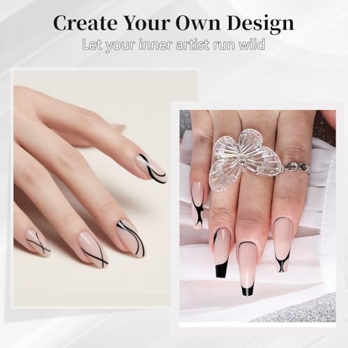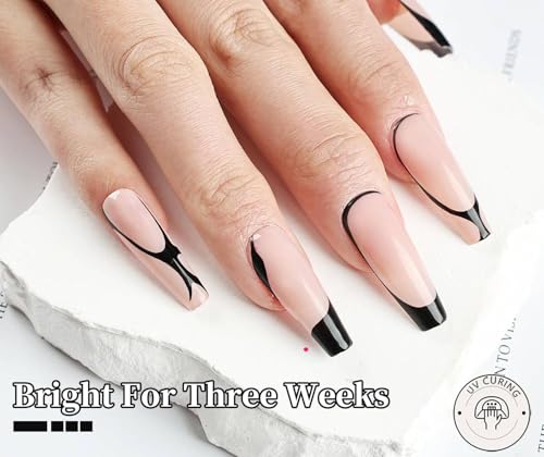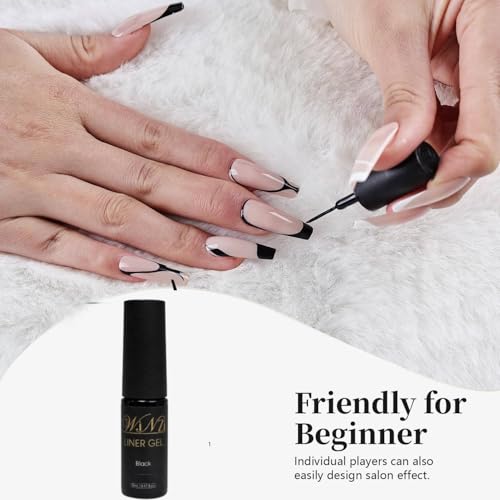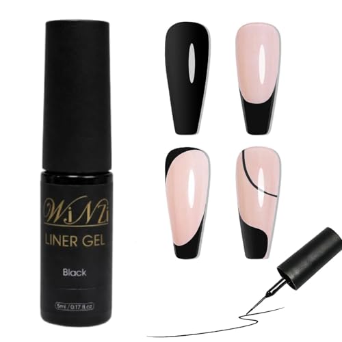 WINZI - طلاء أظافر جل أسود سعة 5 مل بنمط كلاسيكي مع فرشاة رفيعة لأطراف الأظافر الفرنسية والخطوط الدقيقة وتصميمات فن الأظافر قابل للإزالة بالأشعة فوق البنفسجية أو إضاءة ليد رائع للمانيكير المنزلي