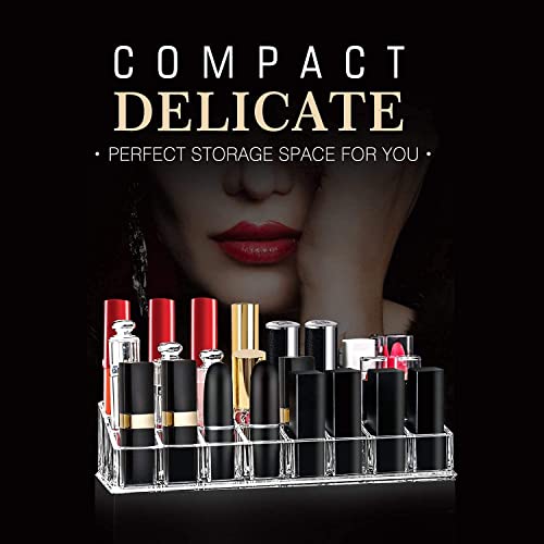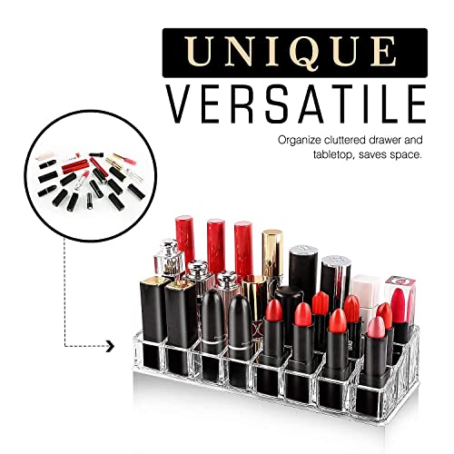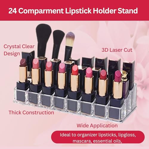 Black Olive - حامل ومنظم أحمر شفاه اكريليك مكون من 24 قسم شفاف للنساء لتخزين أحمر الشفاه والأقلام والماسكارا والفرش والعطور ومستحضرات التجميل من بلاك اوليف، 23 × 9 سم