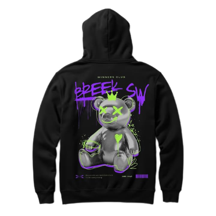 Generic - هودي اسود كبير الحجم للشباب بظهر فني مقاس كبير (دب) 6