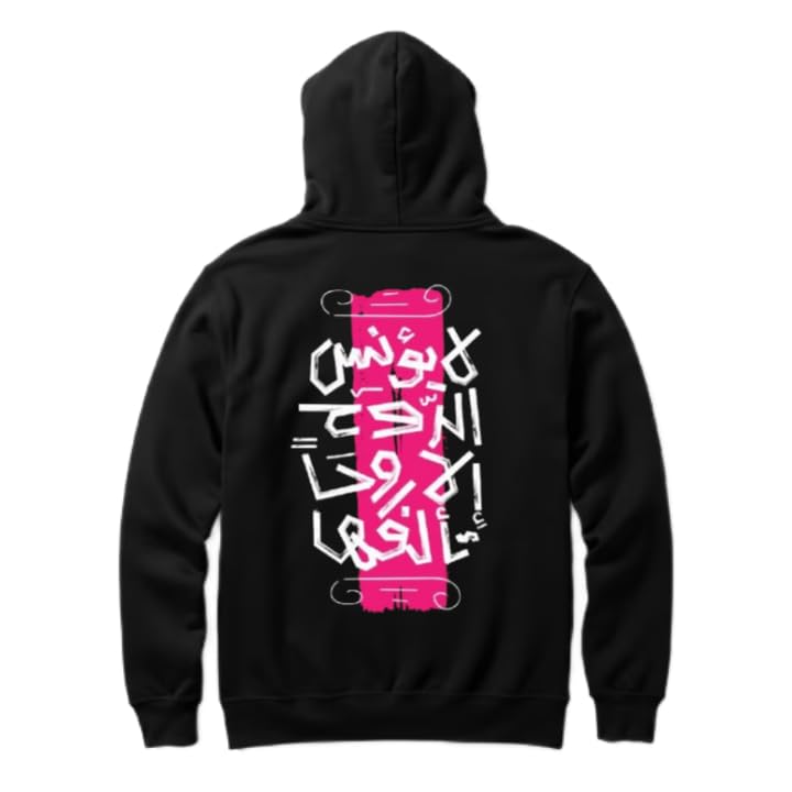 Generic - هودي اسود كبير الحجم للشباب بجزء خلفي فني مقاس كبير من TEXT للعمل (لا يؤنس الروح الا روحا تألفها) 80 \