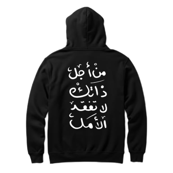 Generic - هودي اسود كبير الحجم للشباب بتصميم فني فني مقاس كبير من TEXT للعمل (من اجل ذاتك لا تفقد الامل)90
