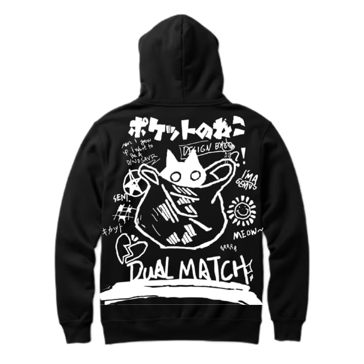 Generic - هودي اسود كبير الحجم للشباب بتصميم فني فني من الخلف مقاس كبير (قطة) 68