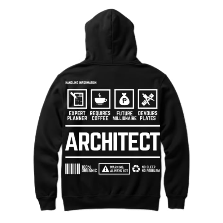 Generic - هودي اسود كبير الحجم للشباب بتصميم فني فني من الخلف مقاس كبير بعبارة TEXT للعمل والعمل القط ((اركيتيك) 64