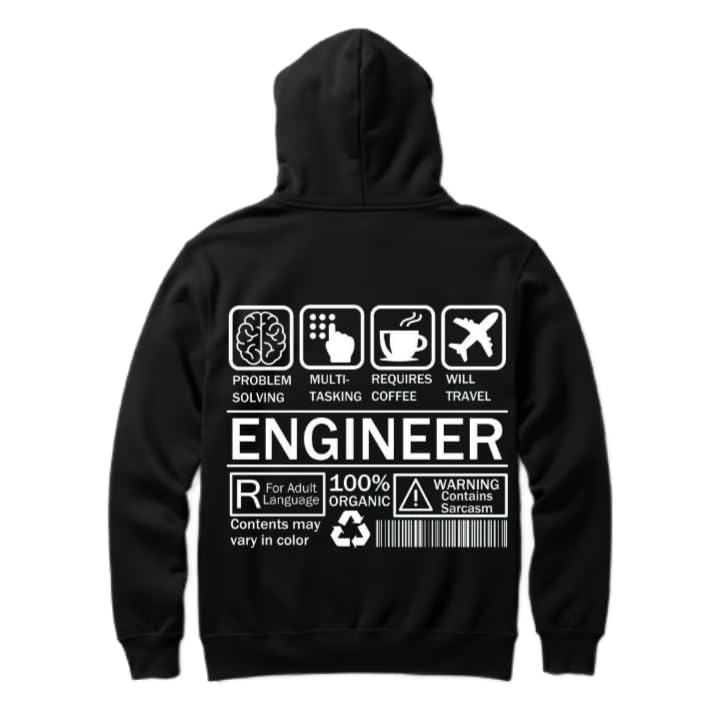 Generic - هودي اسود كبير الحجم للشباب بتصميم فني فني من الخلف مقاس كبير (مهندس) 12