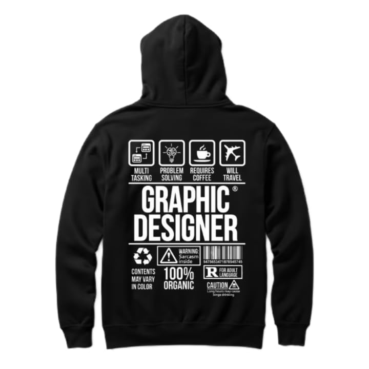 Generic - سويت شيرت كبير الحجم مع رسمة خلفية ونص كبير بكلمة (graphic designer) مناسب للعمل للشباب، مقاس 28 بلون أسود