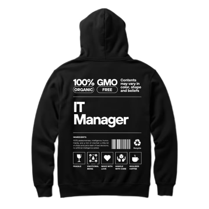 Generic - سويت شيرت بغطاء للرأس للشباب بقصة واسعة، بطباعة عبارة (IT MANAGER) من الخلف للعمل - 21