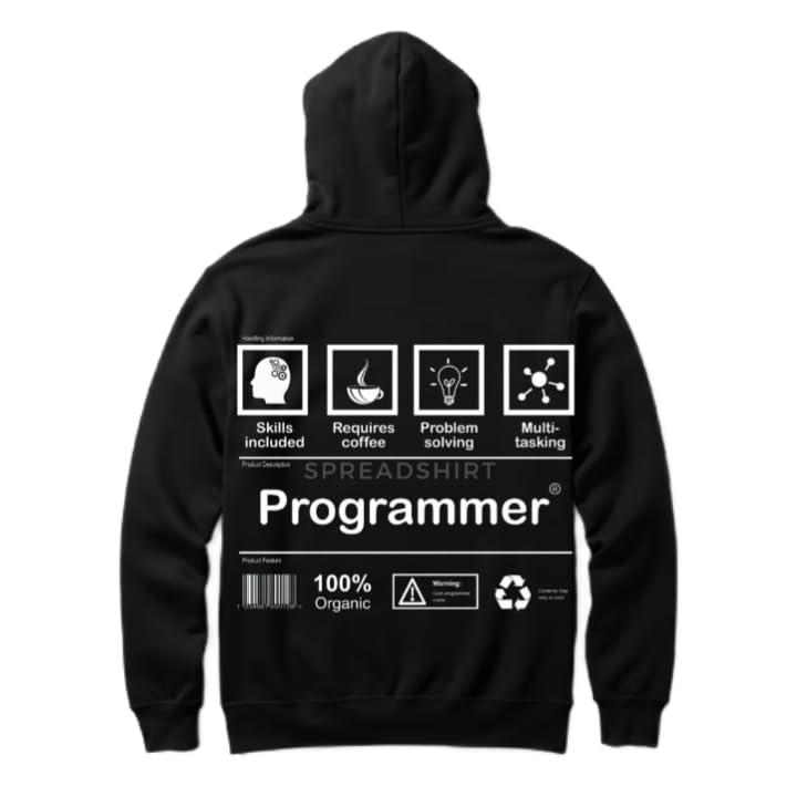 Generic - هودي اسود كبير الحجم للشباب بتصميم فني فني من الخلف مقاس كبير (مبرمج) 677