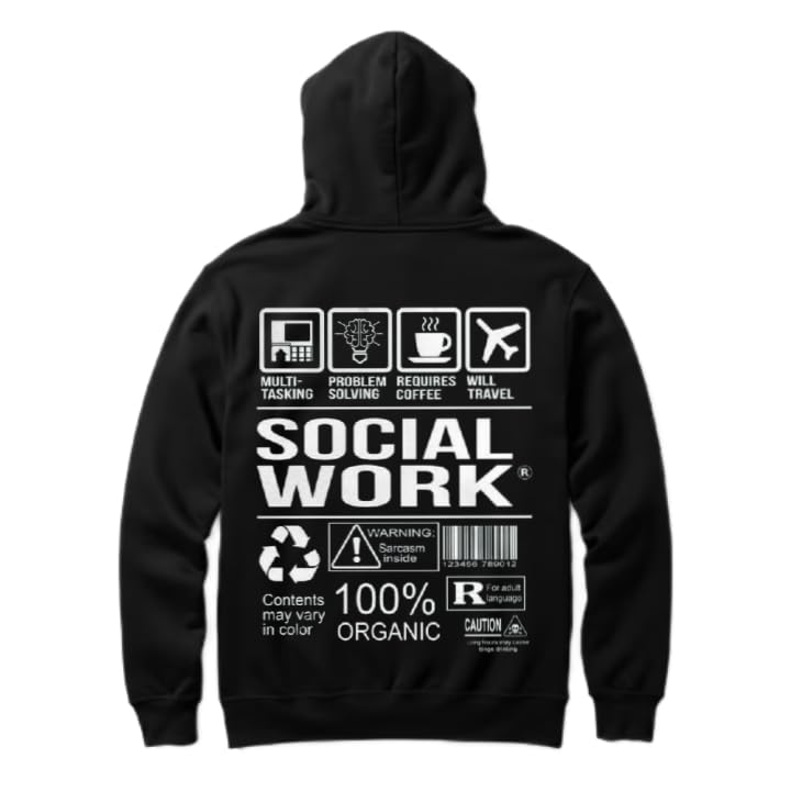 Generic - هودي أسود كبير الحجم للشباب بتصميم فني من الخلف بتصميم كلمة (social work) مقاس 19