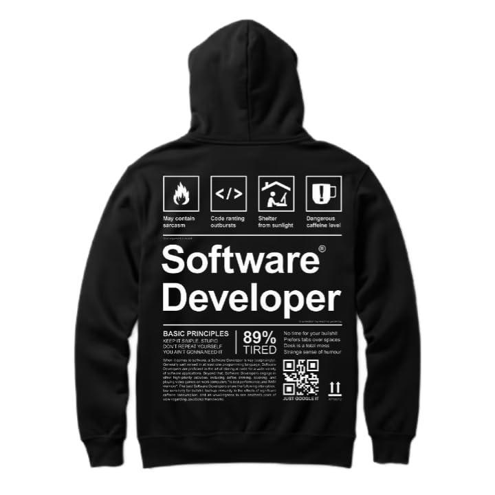 Generic - هودي شبابي كبير الحجم بلون أسود مزودة بنص كبير الحجم، مناسبة لعمل مطور البرمجيات 43