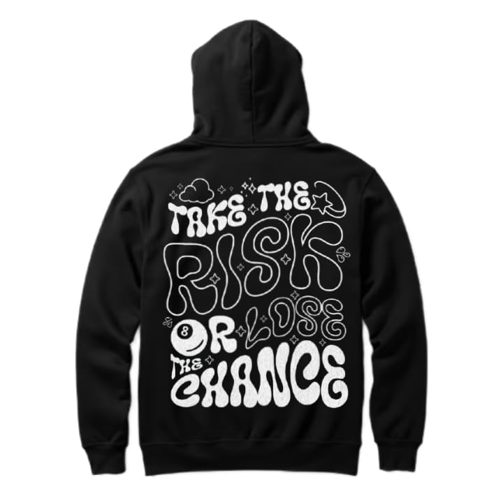 Generic - هودي اسود كبير الحجم للشباب بتصميم فني فني من الخلف مقاس كبير (خذ المخاطرة او تفقد الفرصة) 56