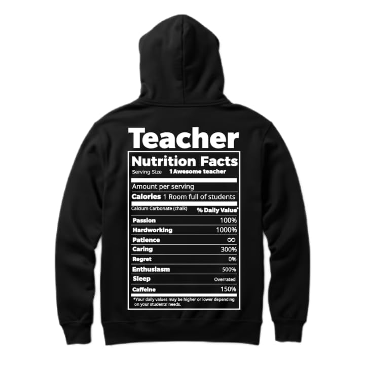 Generic - هودي أسود كبير الحجم مع رسمة خلفية ونص كبير بكلمة (teacher) مناسب للعمل للشباب، 37