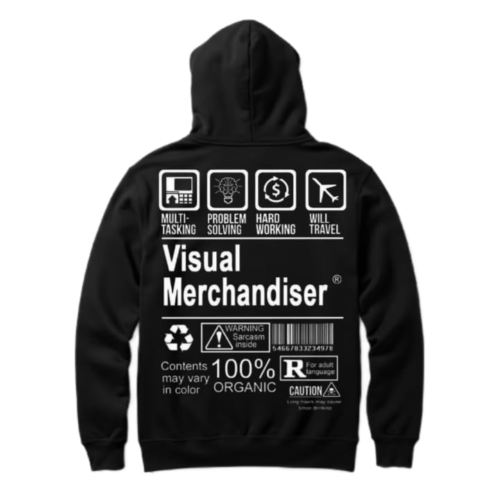Generic - هودي أسود كبير الحجم للشباب بتصميم فني من الخلف مقاس كبير ومطبوع عليه عبارة (visual merchandiser) 20