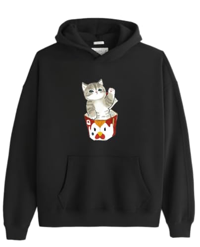 Generic - Black oversize Youth hoodie over size kitty kitten kawaii cute cat 02