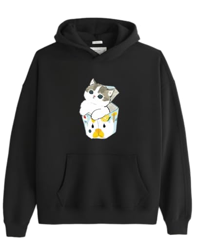 Generic - هودي اسود كبير الحجم للشباب بتصميم قطة كيتي كيتي كاواي لطيف 03