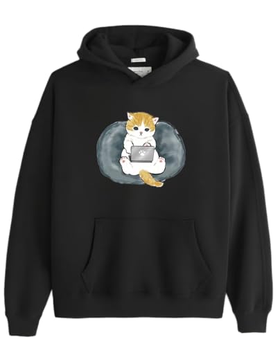 Generic - Black oversize Youth hoodie over size kitty kitten kawaii cute cat 04