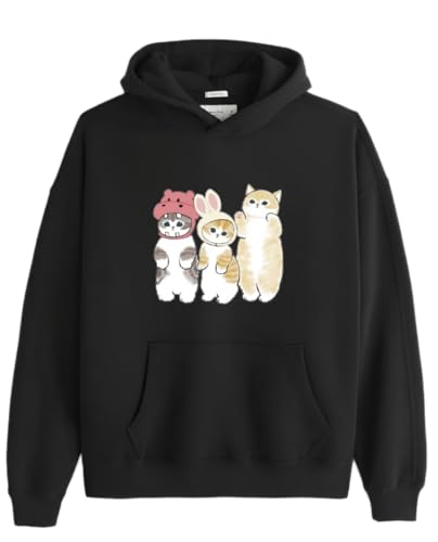 Generic - هودي اسود كبير الحجم للشباب مقاس كبير قطة كيتي كاواي قطة لطيفة 12