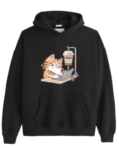 Generic - هودي اسود كبير الحجم للشباب بمقاس كبير قطة كيتي كات كاواي لطيف 129