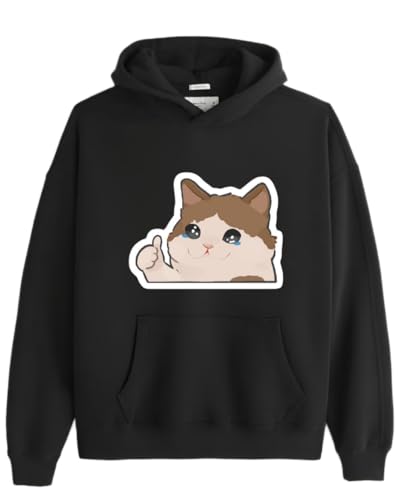 Generic - هودي اسود كبير الحجم للشباب بمقاس كبير قطة كيتي كات كاواي لطيف 130