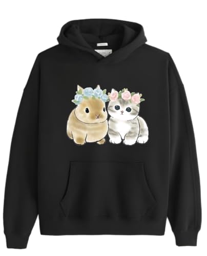 Generic - Black oversize Youth hoodie over size kitty kitten kawaii cute cat 21 bunny