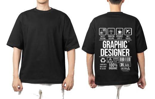 Generic - قميص شبابي كبير الحجم بلون اسود من الخلف مقاس كبير (مصمم جرافيك) مقاس 30