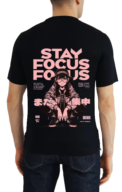 Generic - قميص شبابي اسود كبير الحجم بطباعة فنية من الخلف مقاس كبير (STAY FOCUS) 3