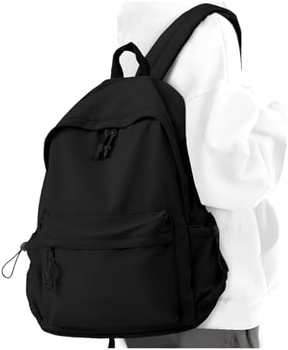 Generic - شنطة ظهر خفيفة بلون اسود سادة مع جيب للاب توب