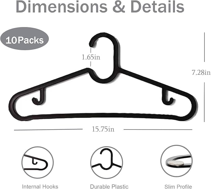 Generic - مجموعة شماعات ملابس مصنوعة من البلاستيك خفيفة الوزن وسميكة غير قابلة للانزلاق موفرة للمساحة لتعليق المعاطف والبنطلونات والفساتين لخزانة الملابس وغرفة النوم، 10 قطع