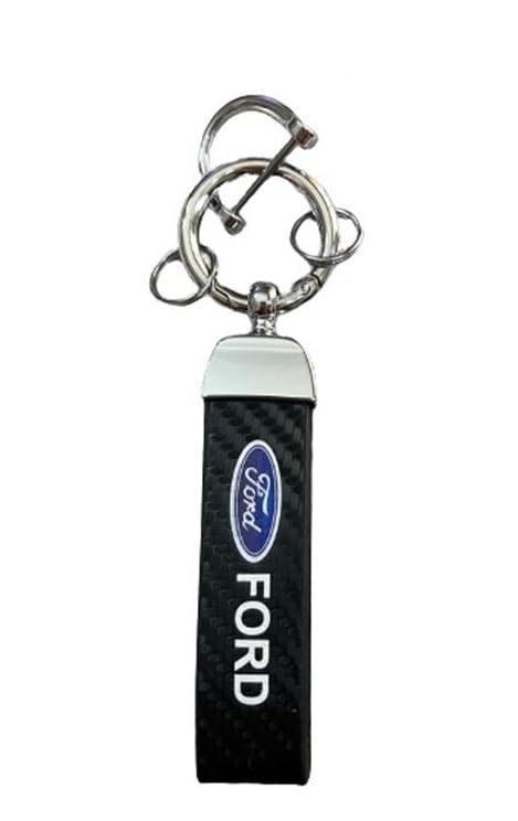 Generic - سلسلة مفاتيح مصنوعة من الجلد الصناعي الأسود وحلقات معدن مناسبة لمفاتيح السيارة ومفاتيح العائلة - متوافقة مع شعار فو@@رد